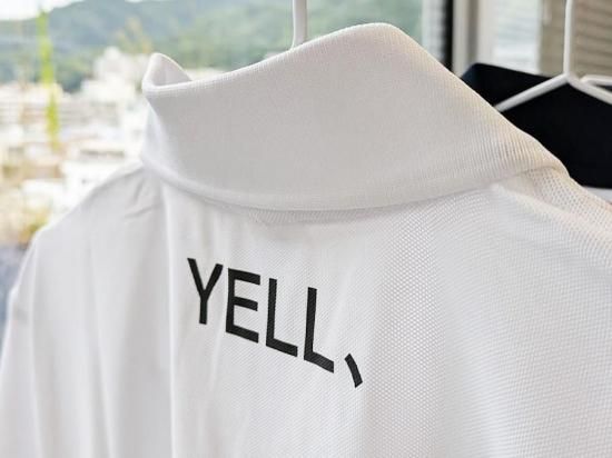 左胸には「HYOGO with SPORTS」のロゴを、首の後ろ側には「YELL、」の文字をプリントしています。